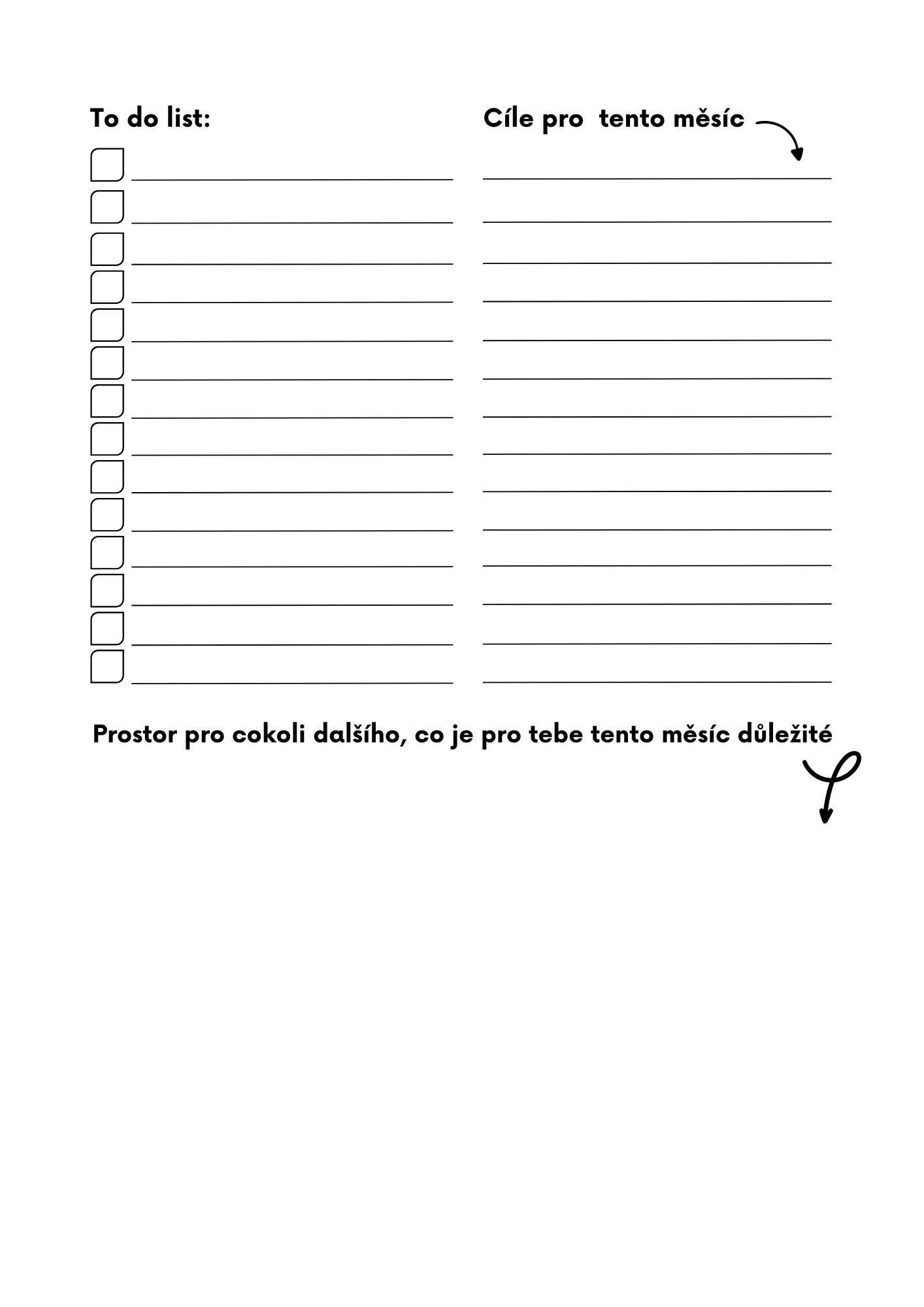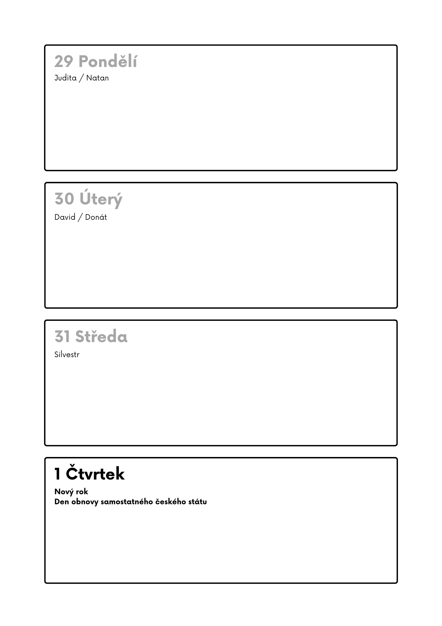 - 🗒️ měsíční přehled – všechny měsíce pěkně přehledně na jedné dvojstránce s prostorem na tvé poznámky